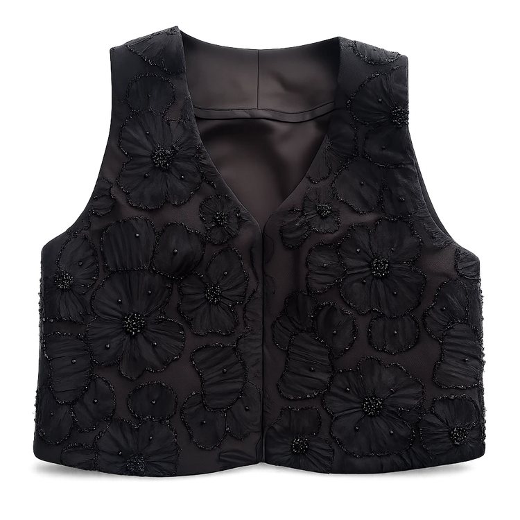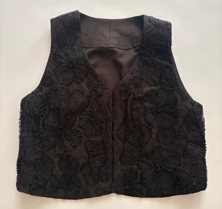 جلیقه توردوزی خاص و چشمنواز مناسب مجالس و مهمانیهای شیک جنس کرپ درجه یک جلوی کار توردوزی شده.