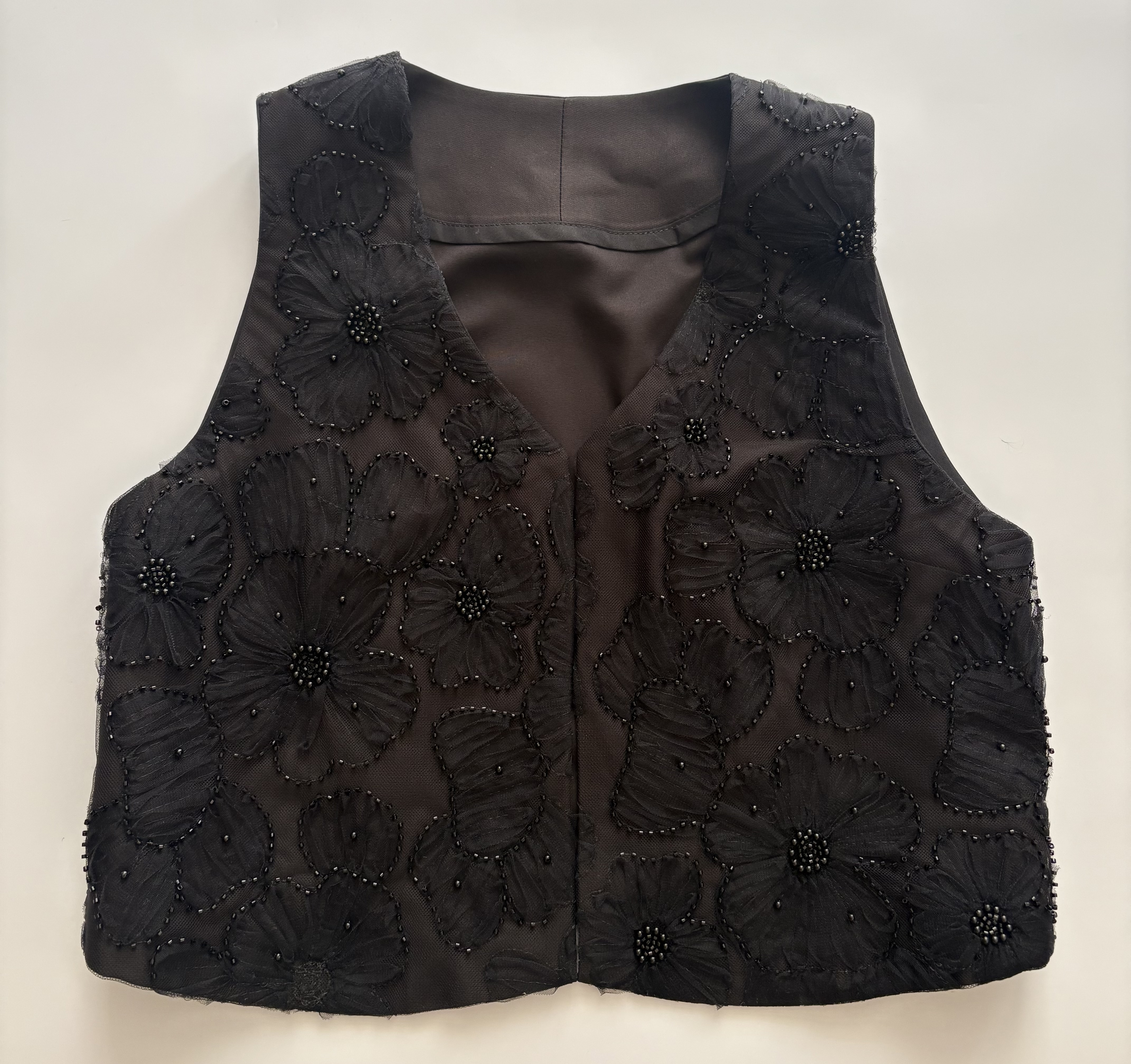 جلیقه توردوزی خاص و چشمنواز مناسب مجالس و مهمانیهای شیک جنس کرپ درجه یک جلوی کار توردوزی شده.